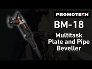 The BM18 is equipped with a simple bevel depth adjustment, overload protection and electronic speed control for use on a variety of materials, including steel and aluminum. The BM18 beveler is highly efficient for edge weld preparation and for producing radiused plate edges for optimal paint and coating adhesion. The compact design makes the BM18 an excellent tool for many fabrication applications