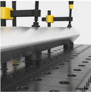 Le prisme avec collerette vissée peut être fixé dans les alésages. Pour un positionnement libre du prisme indépendamment de la grille de trous, vous pouvez facilement dévisser le collier du prisme. Si nécessaire, la hauteur de travail du prisme peut être modifiée par une extension de prisme.s