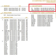 Diffuseur de gaz de rechange à utiliser avec la torche mig refroidie à l'air tweco #5 500 ampères. Il existe trois options en fonction de la plage de diamètres de fil que vous utilisez.