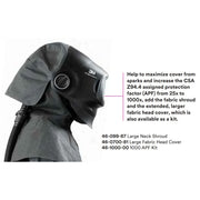 La protection maximale absolue possible pour le casque de soudage G5-01. Ce kit comprend deux pièces ; le grand couvre-chef et le grand linceul. Les deux se connectent directement au G5-01 sans aucune modification.