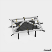The Siegmund Cast Iron Corner Connector with optional diagonal 45° table extension provides additional work space. The Corner Connector is quickly adjustable in a lock-type position. It can be used as a prism, stop or connector piece - compatible with all other squares. The Corner Connector is extremely sturdy and provides connecting, stop- and clamping options on 5 sides.